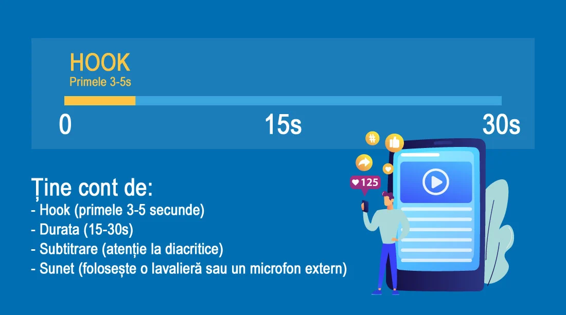 Durata unui Reel viral este de obicei scurtă și concisă. Cele mai eficiente clipuri au între 15 și 30 de secunde. Este important să transmiți mesajul tău clar și rapid, fără să pierzi atenția publicului. Nu te lungi prea mult, ci concentrează-te pe esențial și pe oferirea unei experiențe vizuale atractive.